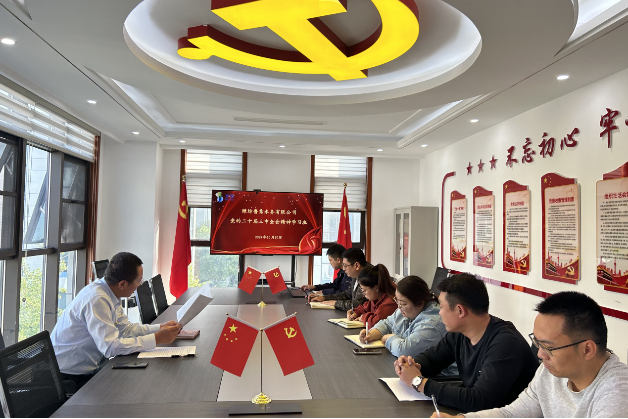 濰坊魯鳶水務(wù)有限公司黨支部組織多種形式學(xué)習(xí)傳達(dá)黨的二十屆三中全會精神,迅速掀起學(xué)習(xí)貫徹全會精神熱潮。通過集中領(lǐng)學(xué)、個(gè)人自學(xué)、交流研討等形式,全面認(rèn)真學(xué)習(xí)了習(xí)近平總書記重要講話、中央《決定》及全會《公報(bào)》,并圍繞企業(yè)改革、企業(yè)高質(zhì)量發(fā)展等主題開展深入研討交流。