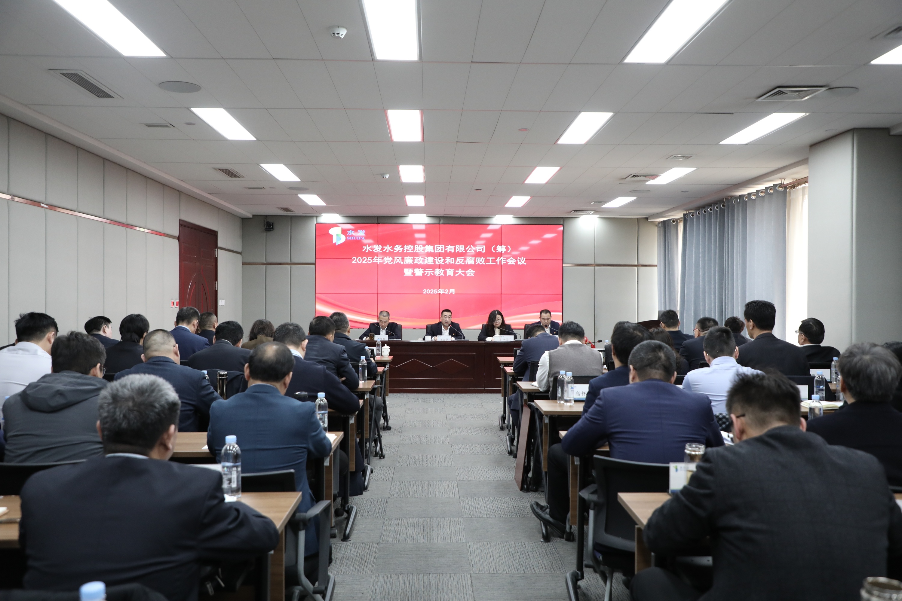 水發(fā)水控集團(tuán)領(lǐng)導(dǎo)班子成員、各部室負(fù)責(zé)人、各區(qū)域公司總經(jīng)理、各權(quán)屬公司黨支部書(shū)記,總部及各區(qū)域公司黨員代表、水控集團(tuán)總部紀(jì)委全體人員等60余人參加會(huì)議。